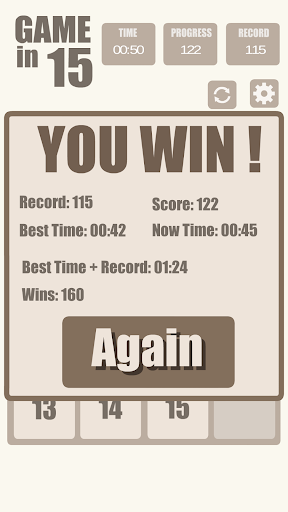 Is a sliding puzzle that consists of a tile. The object of the puzzle is to place the tiles in the order. You can set a record share it with your friends.