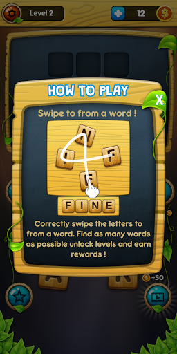 Guess the word, swipe, and connect alphabets to find the hidden words and create the maximum combination of new words to advance to the new level and collect coins.