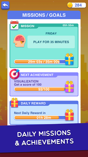 - MISSIONS & ACHIEVEMENTS. Every day, you have a fun mission to complete as well as several goals to achieve.