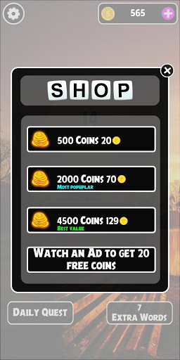 -Have trouble finding the word? Use coins to buy a hint to help you pass the level.