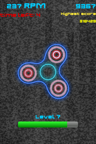 Fidget Hand Spinner is finally on your mobile. Validate levels to unlock new fancy models much more powerful with turbospin mode. Every level passed you release new Hand Spinner Model giving you more points.