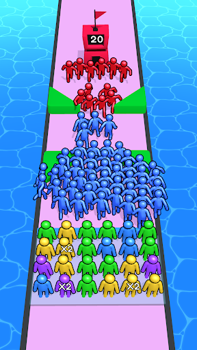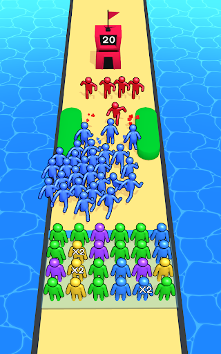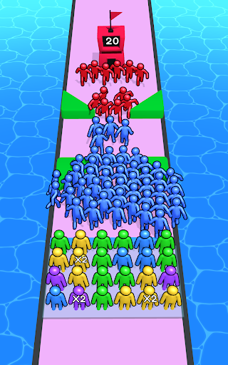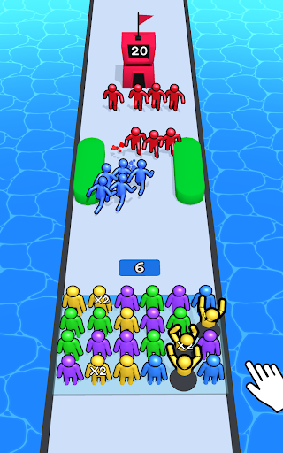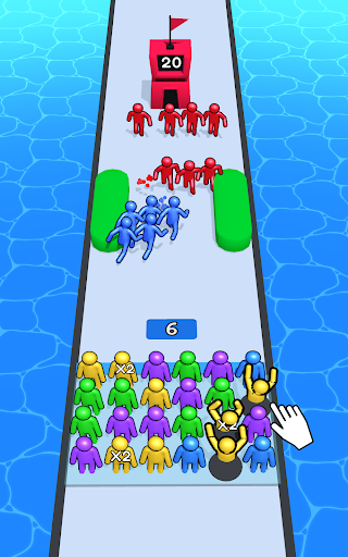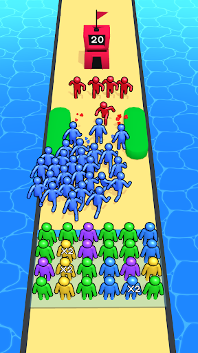 Connect people with the same color to launch them to the battle! How many people can you gather?