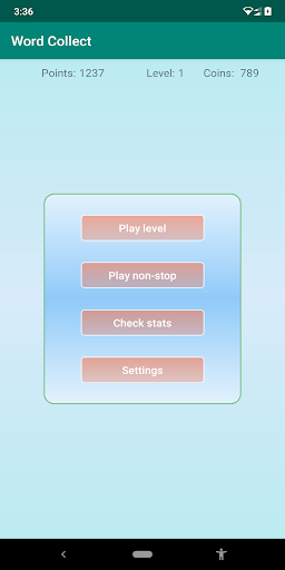 Challenge yourself with words catching letters one at a time, the game starts easy with two letter words and becomes difficult as you progress. Fun and challenging for all ages. You can challenge yourself with progressively difficult levels or words, or you can challenge yourself with random-length words, or you can pick word length i.e. 4-letter words and just keep playing.