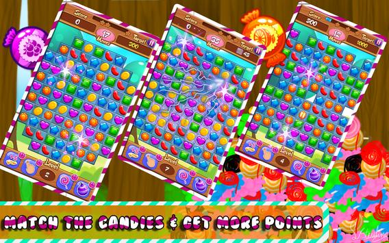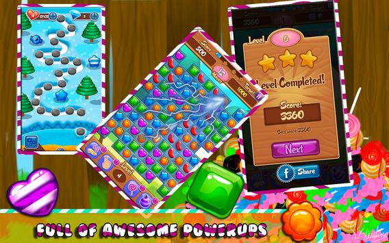 Yayye!! Playmates! Grab your bags and ready for a blast, towards the awesome trip to candylicious journey. New Candies to drive you hungry, more magic fantasized levels, divine combinations and brimming challenges obliges you to explore for more and more. An addictive game of adorable candy in which many level you can unlock easily, but there are some hard levels make you stuck for days or for months. Leaderboard must be glittered with the name of King and three Stars.