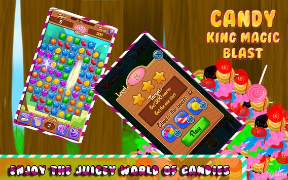 Download the game of magic in your smart devices and become a King of Candy world. Use your head move on with exciting levels of magic land, more Levels, yummy candy magic, more blast and endless adventures to boost your urge to be a king of CANDY MAGIC BLAST. Shove off your ear plugs, dive into the magic world of candy blast, and forget the rest of the world.