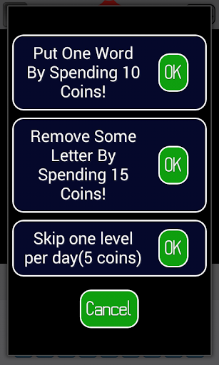 Stuck on a puzzle? Utilize hints and reveals to get out of the jam. You can use them to show random letters or to even remove letters that you don't need. You can even utilize the help of your Facebook friends to see if they can help you with a tough puzzle.