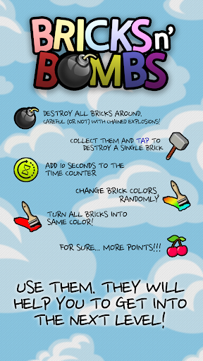 • Bombs!: Destroys all bricks around them. Careful (or not) with chained explosions!
