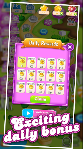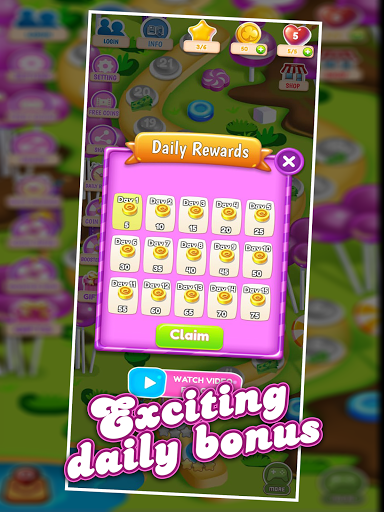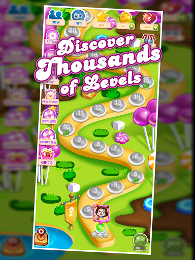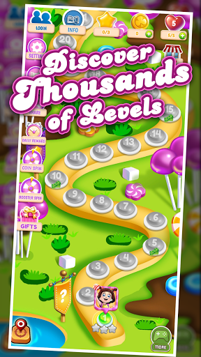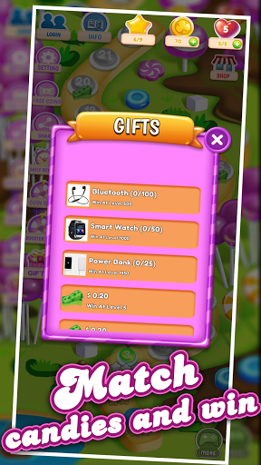 The game rules are simple and interactive for everyone. Just switch and match Candies in this tasty puzzle adventure to progress to the next level for that sweet winning feeling! Solve puzzles with quick thinking and smart moves, and be rewarded with delicious rainbow-colored cascades and tasty candy combos!