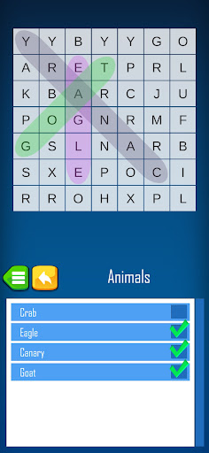 The Word Search game is easy to play, just slide your finger over the letters that make up the word and lift on the last letter that the word is marked. Words can be created in any of eight directions: up, down, left, right, diagonal, etc.