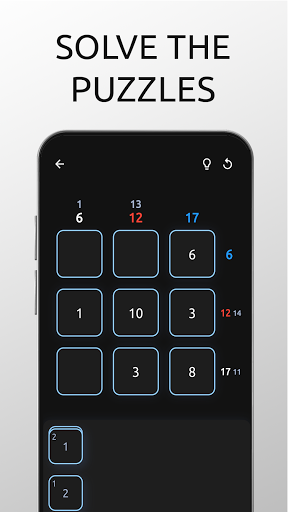 Sumio is an addictive brain game that combines logic with numbers. To solve the Sumio puzzles, drag number tiles from the bank to squares on the grid so the columns and rows sum to the indicated values.