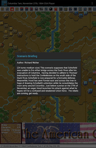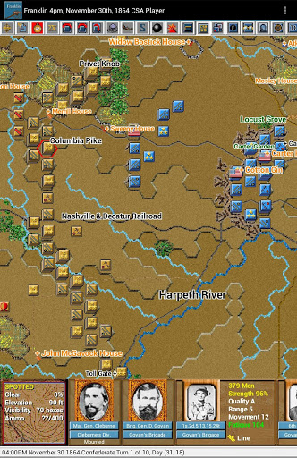 This is a paid release in the touch Civil War Battles series. This release includes 30 scenarios from the Franklin and Nashville campaign covering 15 situations where you can play as either Confederate or Union commander. You should first install and play the free Civil War Battles app to test the game engine on your device and become familiar with the interface.
