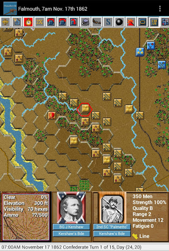 While this version of Civil War Battles will run on large-screen Android phones, it is best on an Android tablet with screen size of 7 inches or more.