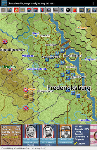 Civil War Battles is a detailed turn-based simulation of combat from the American Civil War. Unit types include infantry, cavalry, artillery, gunboats, and supply wagons as well as leaders which can significantly determine the outcome of a battle just based on their own personal leadership and command abilities. Scenarios in each release generally cover a combination of both historical and “what-if” scenarios allowing you to make decisions as commander of the forces involved that could dramatically affect the outcome.