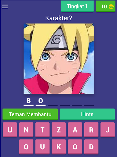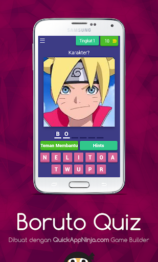 Game Quiz Guess Picture Boruto is een quizspel voor Otaku in een Anime Boruto-serie.Er is een verzameling afbeeldingen gemaakt, zodat de Otaku het kan kunnen beantwoorden.Als het correct is bij het beantwoorden van de OTAKU zal doorgaan naar de volgende podium.Als je problemen ondervindt, is er een hulpoptie dat de Otaku zal gebruiken, namelijk vrienden, familieleden, broers enz.