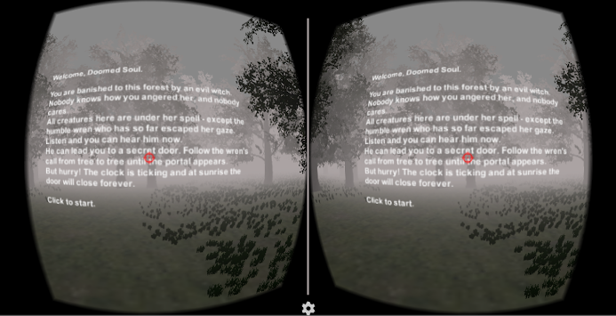 You are trapped in a cursed forest. Only the humble wren is your friend and he will lead you to a hidden exit - but in three minutes it will be dawn and the portal will be gone. Follow the sound of the wren's call and he will lead you through the forest to make your escape.