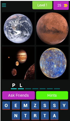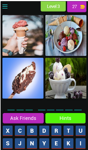 The rules are pretty simple: There will be 4 pictures(pics) appears on screen, all you need to do is to focus at the pictures, draw an analogy and guess logically the correct word.