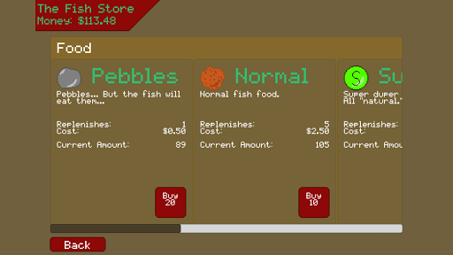 A fish simulator where you can feed your fish, clean its tank, and possibly some more things.