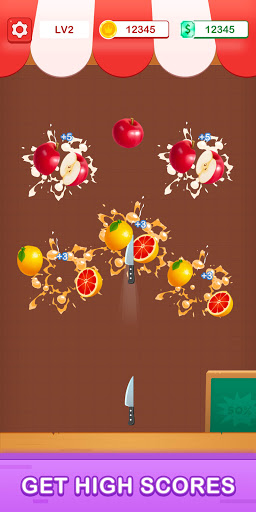 Let's chop fruit and enjoy the splashing juice! How to play: * Pick a suitable knife. * Tap the knife to cut the fruit. * Hit the fruit and avoid miss.
