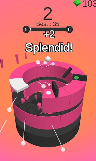 Simple controls just slide the fingers right and left for the maze tower rotation and jump of the ball. Try to avoid the odd colour spots Tower maze and let the ball pass the twister.