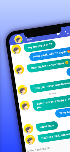 BTS Jungkook fake video call is a simple application is very professional application to make call video with your hero BTS Jungkook chat call and fake video call with a simple live chat, Enjoy calling BTS Jungkook chat in an easy way, feel free and download this BTS Jungkook video call for have fun with friend. BTS Jungkook video Call, Today you can prank your friends and joke with them, Connect to BTS Jungkook fake chat by clicking on the fake chat button and have fun with BTS Jungkook call with your friends.