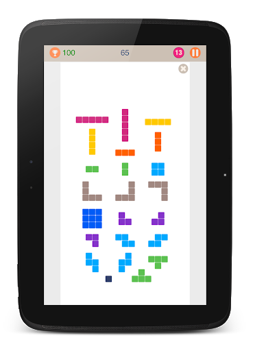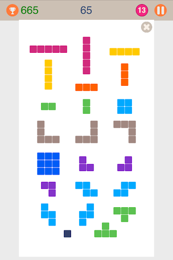 Arrange the shapes in such a way to create lines horizontally or vertically and delete them. Do not let the figures fill the entire screen.