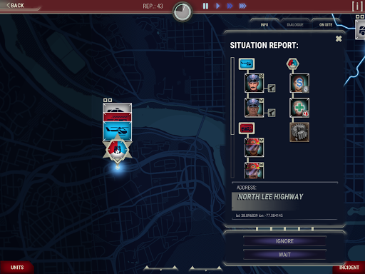 A number of police, fire department and paramedic units are at your disposal. The forces may use a variety of vehicles (from common ambulances to police helicopters), essential equipment (e.g., bulletproof vests, first aid kits and technical tools) and consist of team members with different abilities.