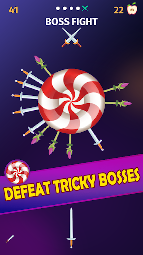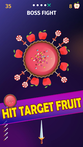 Game is very simple and cool, throw the knife into the foods(fruits and sweets) logs to slice them and earn apples to unlock special knives. Boss levels are very challenging to clear. Never throw the knife again at same place. Use headphone for the best experience.