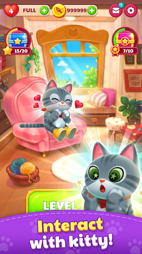 Interact with lovely kitten and pop the puzzle together!