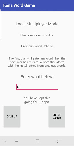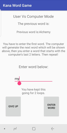 This game is also known as, last two letters first two letters. A word is entered then the next word to be entered has to start with the last two letters of the previous words.