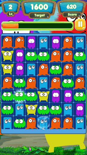 Have fun with this puzzle adventure linking 3 or more monsters to generate special effects. 96 levels to discover. Generate your best strategic movements by joining 6 or more monsters in a linear or adjacent way to obtain a higher score and generate explosions of your favorite monsters.