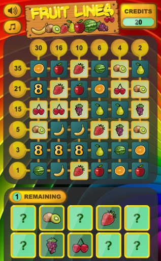 Fruit Lines is a casino slot machine game that you can play absolutely for free. You receive credits when winning rounds, and you can play as many and as often as you like with in-game credits.