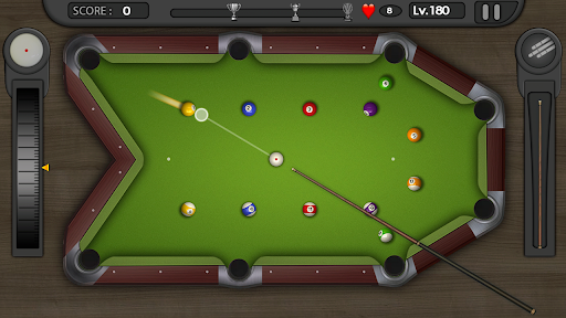 In this billiards game you can play with different billiards cues on various good looking pool tables.