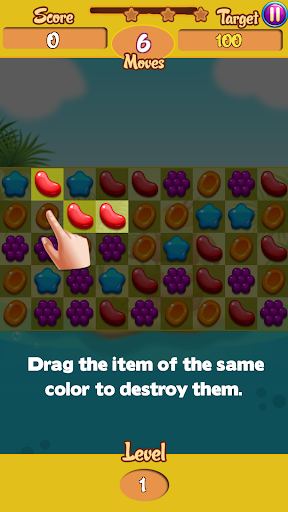 Candy Puzzle game Challenging 100 Levels Candy Fresh Farm Is easy to play How to Play: Drag the item of the same color to destroy them