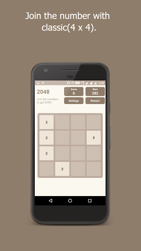 Swipe (Up, Down, Left, Right) to move the tiles. When two with the same number touch, they merge into one. After every swipe, a new tile will appear in a random empty spot on the board. Slide the cells to merge them, 2 2=4, 4 4=8, 8 8=16, 32 ... 64 ... .. 1024 ..., when 2048 tile is created, you win!
