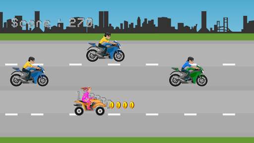 Crowds flock atv traffic quickly. Be careful of the traffic will be accelerated with each passing second. Collect all the gold from the traffic accidents and make the highest score. Make a beatiful woman with speed traffic behind you.