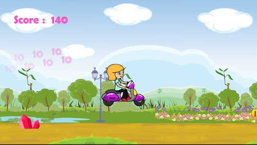 Scooter Ride Girl Ride a scooter with lovely little girl. Jumping over obstacles, collect gold. Collect all the gold in order to make the maximum score.
