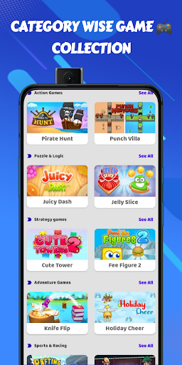 2.Select any games from any category listed in our app by just left-right and top-down scroll. You can search games in search area and find your game.