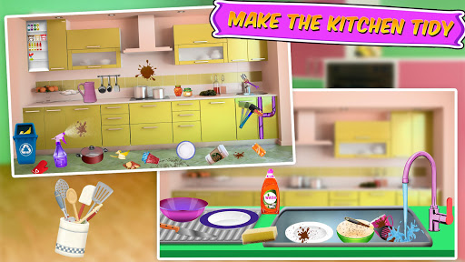 • Explore the different places such as bedrooms, kitchen, bathroom and much more to clean & have fun!!