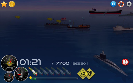 Silent Submarine 2 HD Career: Convoy hunter is a continuation of the Silent Submarine naval shooting game. You need to control a submarine and sink enemy ships of the convoy. Your hydroacoustics damaged, perform the submarine attack on the surface. Perform assigned tasks and earn experience points. Your boat is the last defender of the coast. Your glorious career in sea battles will be rewarded with new ranks and general respect.