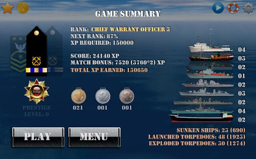 3. The larger the ship, the more you need to spend a torpedo to its destruction.