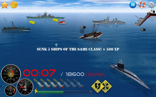4. Damaged warships begin to shoot. click on the submarine to dive and you will be saved.