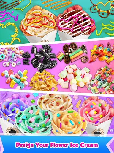 Decorate your flower ice cream with sprinkles, kinds of sauces and so many candies. You will like it.