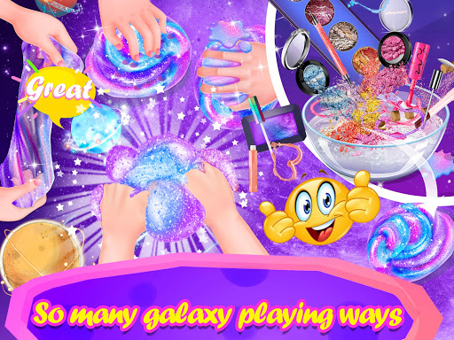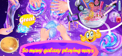- Tons of playing ways to play with glitter galaxy slime. Press,poke,squish,pull, and brand new slime simulator etc.