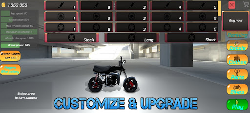 🚗 Customize and Upgrade: Build your dream Wheelie machine! Choose from a wide range of bikes, and upgrade them with powerful engines, nitrous boosts, and sleek body kits.
