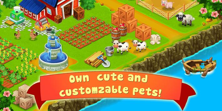 Dream Farm: game simulator for the whole family! Start your happy day in the village and finish as a farmer in the town. When the town surrounds you have a unique possibility to create your paradise - village land. Pick harvest, fruits, vegetables and animals every day. Hey, do not forget to sell your agricultural products in the town.