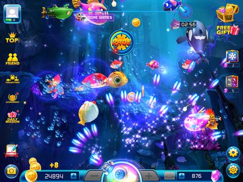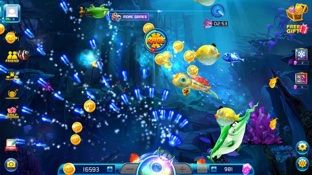 Welcome to own beautiful ocean. You can look for all of the creatures in the wide ocean. Turtle, Gold shark, even Mermaid that only appears in the legend are swimming in your hand now. Try to catch as much fishes to receive more exciting gift. With big fishes, you can move to other guns in order to shoot them. You can look for Coin and Ruby while you shooting fishes