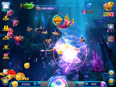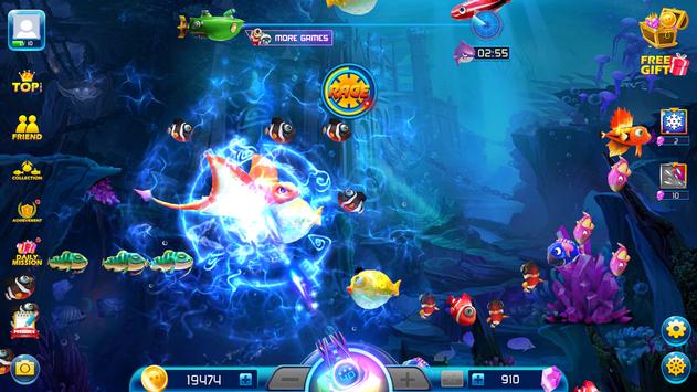Touch and hold your device to indicate the direction of shooting, your fish cannon will fire.