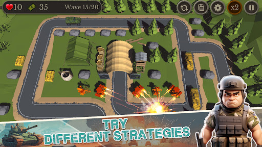 Download now and get ready to dive into thrilling WWII strategy defense battle fun! Show off your masterful tactics in this competitive 3D tower defense PvP game. Defend your kingdom from the tank hordes in this epic 3D tower defense game set in World War II! You are a new commander in the midst of the war. You're just a soldier, but your mission is to protect your kingdom from the enemy tanks. Use your strategic skills and battle tactics to build and upgrade lots of artillery units in 3D. These include Machine Gun Towers, Cannon Towers, Sniper Towers, Speed Bumps, and Radar Towers. You can also use power-ups like mines and teleport holes to defeat the enemy. The enemy tanks will come in waves, each tougher than the last. You'll need to use your resources wisely and plan your defenses strategically if you want to survive.