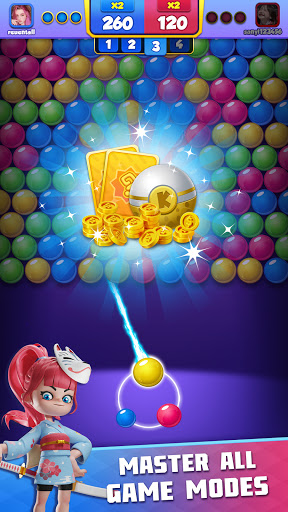 Match and eliminate 3 identical bubbles. You can use skills to eliminate a large number of bubbles to get extra shooting opportunities and create high-scoring competitions. Can also create obstacles for the opponent, so that the opponent can not get high scores, no matter which strategy can win, master players can definitely make the opponent desperate.