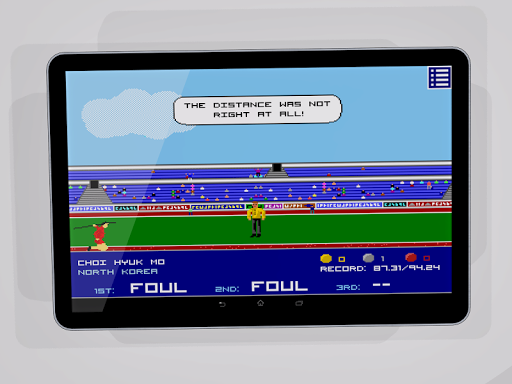 ★ Simple controls to set the angle, run and throw needs no more than just tapping and pressing the screen exactly at the right time for longest possible throw. The changing wind also affects the javelin's trajectory.